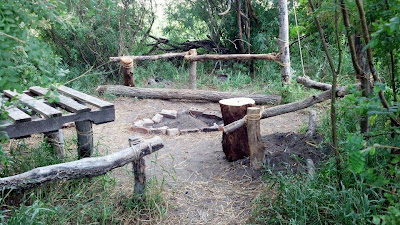 On one of our walks we found the great hidden, cute, little hand made play fort. It was awesome! It is hidden back in one of the campsites and someone has spent a lot of time & talent on it creating the play fort. Everything was made strictly out of old tree logs & bailing twine - it really was a site to see and the kids had an absolute blast playing back there (as did I :) ).